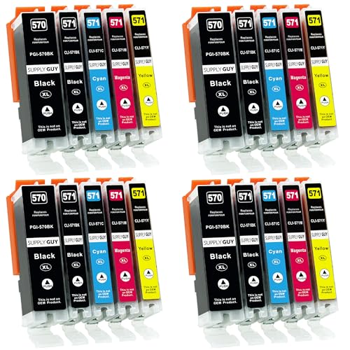 Supply Guy 20 XL bläckpatroner kompatibel med Canon PGI-570 CLI-571 för MG5700 MG5750 MG5751 MG5752 MG5753 MG6800 MG6850 MG6851 MG6852 MG6853 TS5000 TS5050 TS5051 TS5053 TS5055 TS6050 TS6051 TS6052