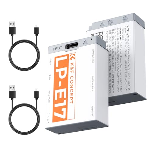 K&F CONCEPT LP-E17 Batteri 1040 mAh med USB-C-kontakt 2 batterier Kompatibelt med Canon EOS R50 R8 RP R10 R100, M6 II M5 M3 77D T6i 750D T6s 760D T7i 800D T8i 850D