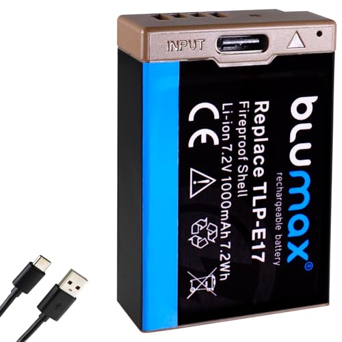 Blumax batteri LP-E17 USB-typ C ingång 1 000 mAh kompatibel med Canon EOS RP R8 R10 R100 77D 200D 250D 750D 760D 800D 850D EOS R50