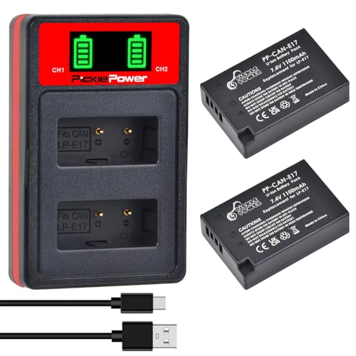 Pickle Power LP-E17 batteri 1 100 mAh och USB LCD laddare kit för Canon Rebel SL2, SL3, T6i, T8i, T7i, EOS RP, EOS R10, R8, R50, R100, M3, M5, M6, 200D,77D, 750D,760D,800D, 800D (2-pack)