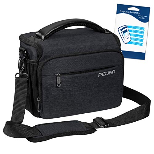 PEDEA DSLR-kameraruckväska"Noble" med displayskyddsfolie för Panasonic Lumix DMC-G2/Pentax K-S2/Ricoh GR II/Sony Alpha 68/Canon EOS 6D Mark II 80D 750D 800D 1000D 4000D, antracit