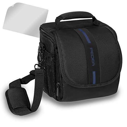 PEDEA DSLR kameraväska "Essex" med skärmskydd för Olympus E-M5 Mark II Pen E-PL8 E-PL9/Canon EOS M50/Nikon D5600 D7500/Panasonic G9 G70 G81 GX8/Fujifilm X-T3 X-T100, M svart/blå