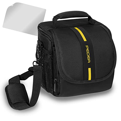 PEDEA DSLR kameraväska "Essex" med skärmskydd för Olympus E-M5 Mark II Pen E-PL8 E-PL9/Canon EOS M50/Nikon D5600 D7500/Panasonic G9 G70 G81 GX8/Fujifilm X-T3 X-T100, M svart/gul