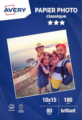 Avery - 80 ark glansigt fotopapper 180 g/m², format 10 x 15 cm, bläckstråleutskrift,