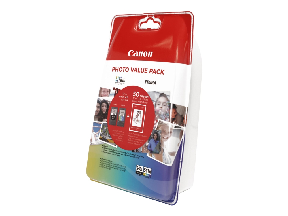 Canon Pg-540L/Cl-541Xl Photo Value Pack - Blank - 2-Pack - Lång Livslängd - Svart, Färg (Cyan, Magenta, Gul) - Original - Blister - Bläckbehållare / Papperspaket - För Pixma Mg3150, Mg3550, Mg3650, Mg4250, Mx395, Mx455, Mx475, Mx525, Mx535, Ts5150,