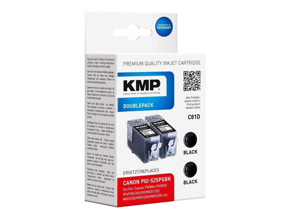 Kmp Doublepack C81d - 2-Pack - 19 Ml - Svart - Kompatibel - Bläckpatron (Alternativ För: Canon 4529B001, Canon Pgi-525Pgbk) - För Canon Pixma Ip4950, Ix6550, Mg5350, Mg6250, Mg8150, Mg8250, Mx715, Mx885, Mx892, Mx895