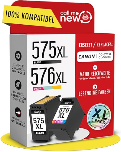 callmenew 575XL & 576XL bläckpatroner – kompatibla med Canon 575 576 (PG-575XL svart & CL-576XL färg) – XL räckvidd, smart chip, ersättning för PIXMA TS3550i TS3750i – 2-pack