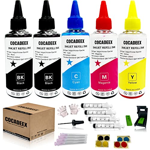COCADEEX Bläckpåfyllningssats kompatibel med Canon bläckpatron PG-560 CL-561 PG-540 CL-541 PG-540XL CL-541XL 540 541 540XL 541XL 560XL 561XL PG-40 CL-41-serien, 5 flaskor bläck med påfyllningsverktyg