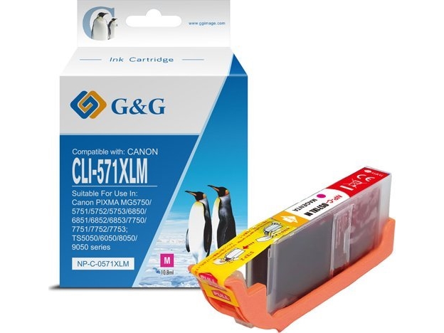G&G Kompatibelt Bläck Med Cli571m Xl, Magenta, 10,8 Ml, Ml Np-C-0Cl571xlm, Hög Kapacitet, Canon Pixma Mg5750, Mg5751, Mg5752, M