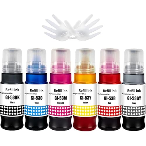 LCL kompatibel bläckpatron GI53 GI-53 BK GI-53BK GI-53C GI-53M GI-53Y GI-53R GI-53GY (svart cyan magenta, gul, röd, grå) ersättning för Canon Pixma G550, G650