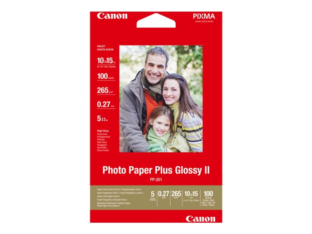 Canon Photo Paper Plus Glossy Ii Pp-201 - Högblank - 270 Mikrometer - 102 X 152 Mm - 265 G/M² - 100 Ark Fotopapper - För Maxify Gx6040, Gx6050, Gx7040, Gx7050 Pixma G540, G550, G640, G650, Ts3450, Ts3451