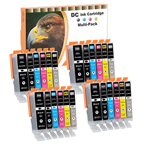 D&C skrivarpatroner PGI CLI 550/551 ersätter Canon Pixma iP7200, iP7250, iP8750, iX6850 MG5450 MG5550 MG5650 MG5655 MG6350 MG6450 MG6650 MG7100 MG7150 MG7550 MX725 MX925 24er Set (B/PB/C/M/Y/G)