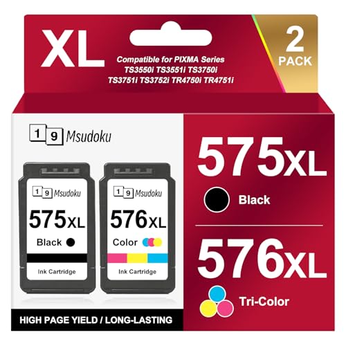 PG-575XL CL-576XL Bläckpatroner PG-575 Svart CL-576 Färg Kompatibel för Canon Bläckpatroner 575 576 XL för Canon PIXMA TS3750i TS3550i TS3551i TS3751i TS3752i TR4750i TR4751i (1 Ssvart 1 Färg)