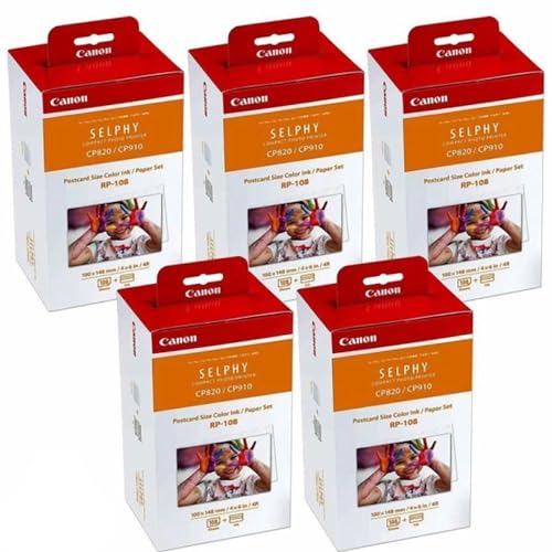 Canon 5 st färgbläck/pappersset kompatibelt med nGXNfP med SELPHY CP910/CP820/CP1200, RP-108