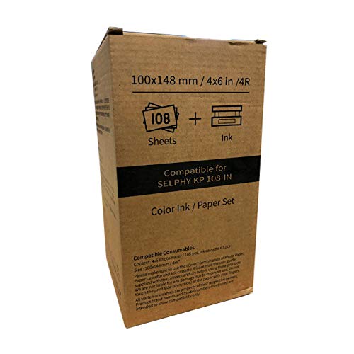 Ersättning Canon KP-108IN bläck och papper set 3115B001 (AA) för Selphy CP1300 CP1200 CP1000 CP780 CP790 CP810 CP910-serien fotoskrivare, 108 ark papper (4 x 6 tum vykortstorlek) Bläckpatroner
