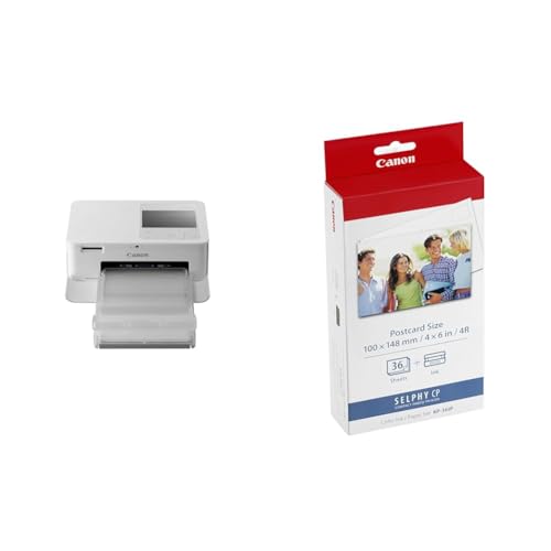 Canon SELPHY CP1500 Mini fotoskrivare (utskrift upp till vykortsstorlek 10 x 15 cm) vit [utan färgband/papper, utan batteri], & Canon KP-36IP Bläck/Papper kit - Vykortstorlek - 36 utskrifter