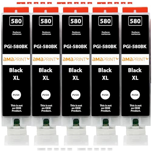 Amaprint 5 XL patroner kompatibla med Canon PGI 580 PGBK Svart för Pixma TR7500 TR7550 TR8500 TR8550 TS6100 TS6150 TS6151 TS6300 TS6350 TS8100 TS8150 TS8151 TS8152 TS8350 TS9150