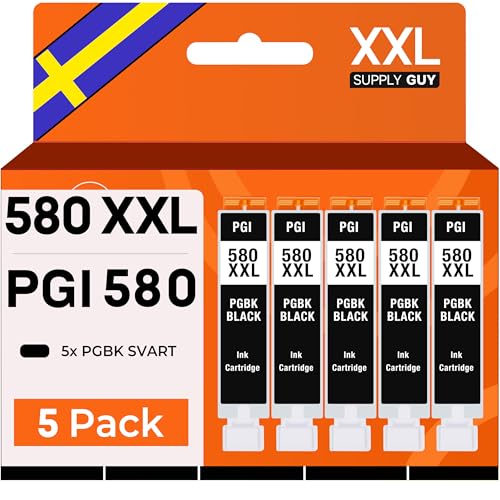 Supply Guy 580XXL Bläckpatroner Svart PGBK kompatibla med Canon PGI-580 XXL för Pixma TS705 TS705a TS6350 TS6350a TS6351 TS6351a TS6300 TR8550 TS9550 Multipack 5 patroner