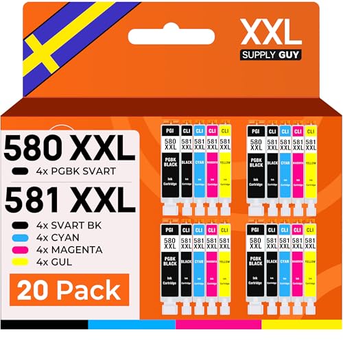 Supply Guy 580XXL 581XXL Bläckpatroner kompatibel med Canon PGI-580 CLI-581 för Pixma TS705 TS705a TS6350 TS6350a TS6351 TS6351a TS6300 TR8550 TS9550 TS6150 TR7550 Multipack 20 Patroner 580 581 XXL