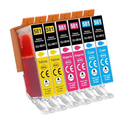 Jhaan CLI-581XXL bläckpatroner kompatibla med Canon 581 CLI581 kompatibla med TS705 TR8550 TS6150 TR7550 TS6250 TR8500 TS8251 TS6350 TS9550 TS6151 TS9551 (cyan magenta ta gul, 6 Förpackning: