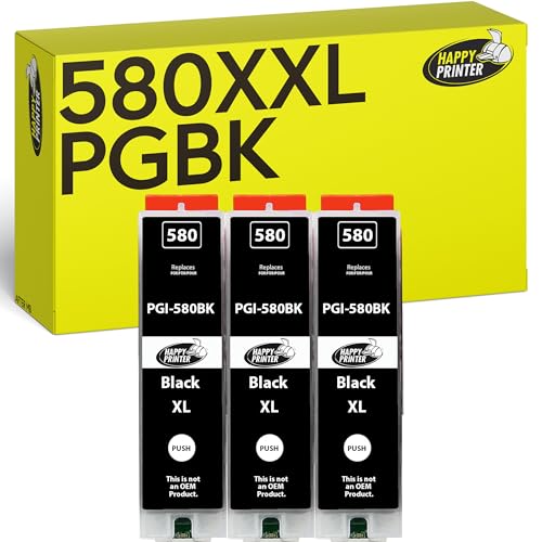 Happy Printer 3 XL patroner kompatibel med Canon PGI-580 PGBK för Pixma TR7500 TR7550 TR8550 TS6100 TS6150 TS6151 TS6250 TS6251 TS6350 TS6351 TS705 TS9550 TS9551c