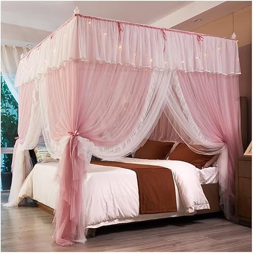 Bed Curtain Canopy Myggnät med fyra hörnstolpar Sänggardiner 2-i-1 vindtät Ljussäker sänghimmel för vuxna flickor Inredning i hemmet i sovrummet (Color : Double layer, Size : 150X200x200CM)