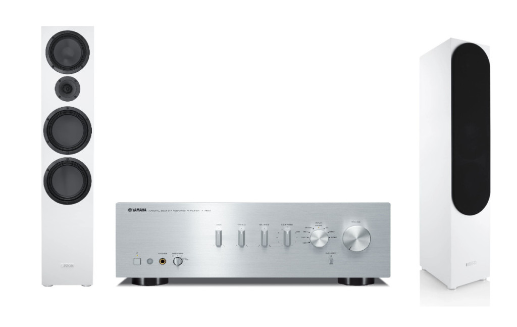 Yamaha Kraftfull Stereo med Canton GLE90 S2 Silver med vita högtalare