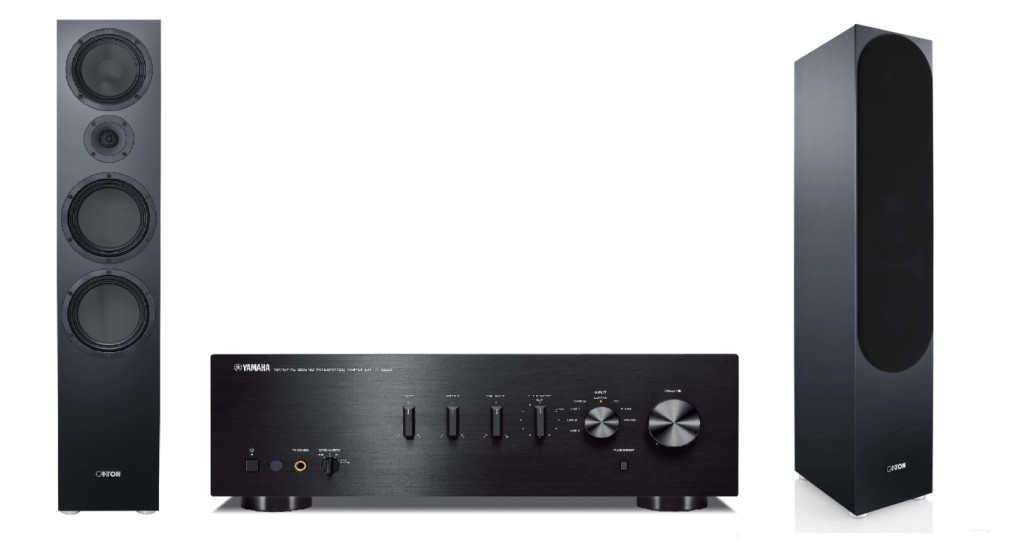 Yamaha Kraftfull Stereo med Canton GLE90 S2 Svart med svarta högtalare