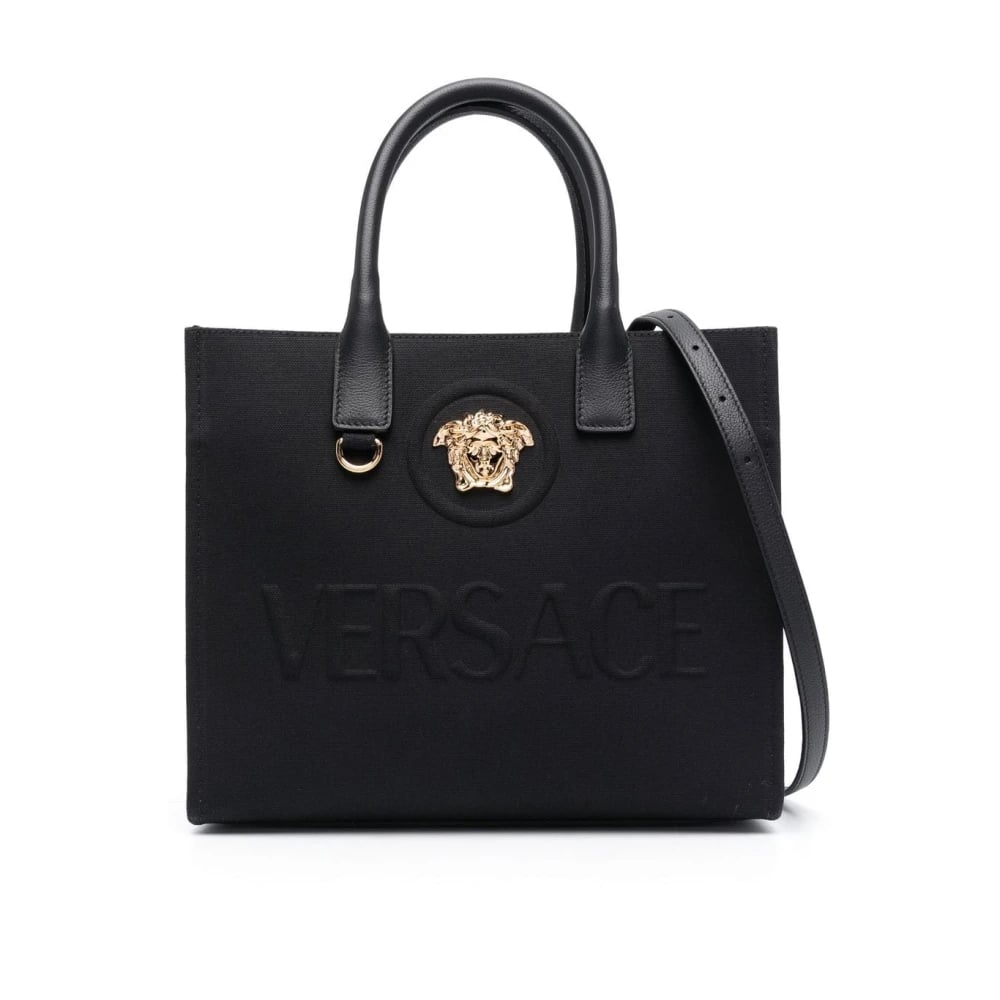 Versace, Väskor , Dam, ONE Size, Läder, Svart Canvas/Läder Axelväska