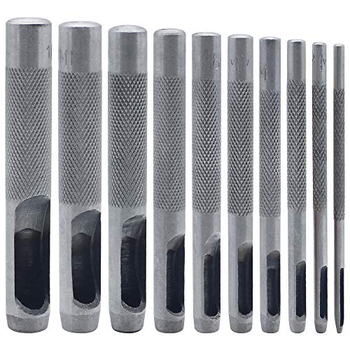 DXLing 10 Pieces Round Steel Hollow Punch Set 1 mm to 10 mm Different Sizes Leather Craft Hollow Hole Punch Cutter Tools for Watch Band Gasket Belt Strap Shoe Fabric Canvas Clothes Eyelet - Silver