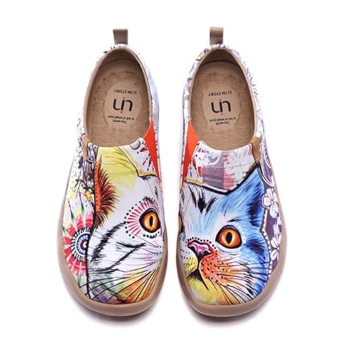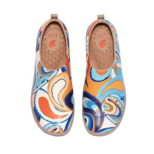 UIN Canvas skor dam slip på, modell konst målade granatäpple, vit, Silky Cappuccino, 38 EU