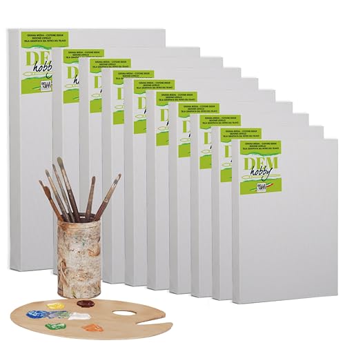 Koncci Canvas för målning, uppsättning av 10 dukpaneler – 20 x 20 cm, 20 x 25 cm, A4 (21 x 29,7 cm), 100 % bomullsyrafri försträckt kanvas, tom målning kanvas för konst, akryl, olja, akvarellfärg