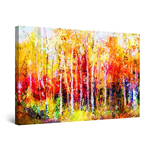 Canvas Startonight Väggkonst Abstrakt - Färgat Landskap Skogsträd Italien Målning - Stor Inramad 80 X 120 Cm