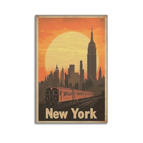 DGHFOP Retro reseaffisch för New Yorks tåg väggkonst canvas affisch dekorativ målning för vardagsrum sovrum 40 x 60 cm (16 x 24 tum) utan ram