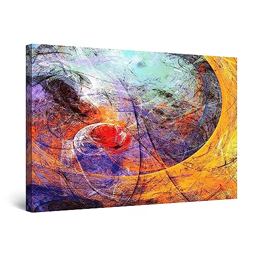 Canvas Startonight Väggkonst Abstrakt - Blågrön Orange Abstrakt Målning Från Framtiden - Stor Inramad 80 X 120 Cm