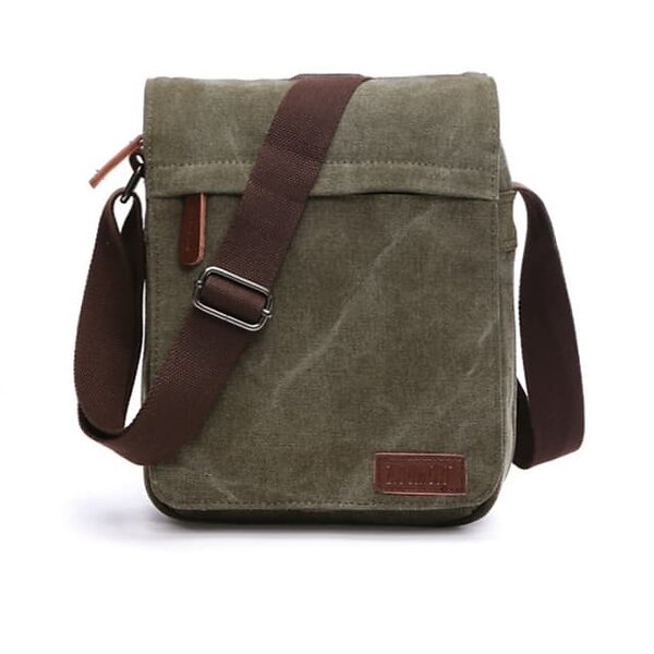 Sumleno Canvas Messenger Bag, axelväska i kanvas för kvinnor, militärgrön, stor, Militärgrön, L