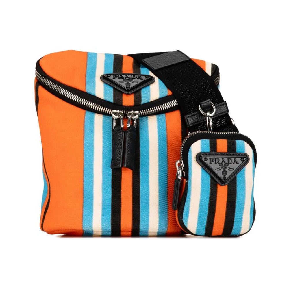 Prada Vintage, Vintage , Dam, ONE Size, Förägda canvas Crossbody-väska med justerbar axelrem och extern ficka