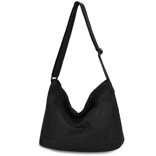 VASCHY axelväska herr, Messenger Bag Canvas väska lätt Casual Crossbody för dam, svart