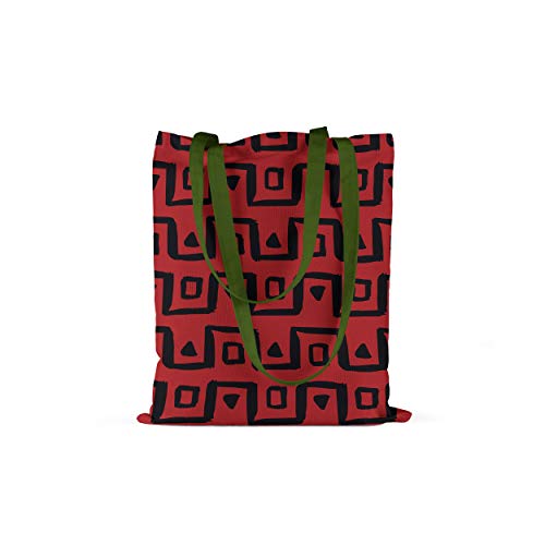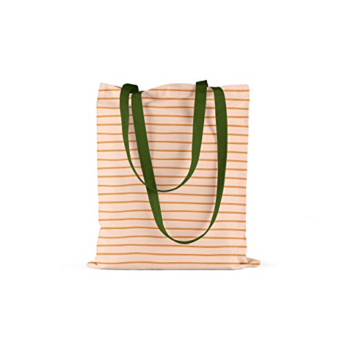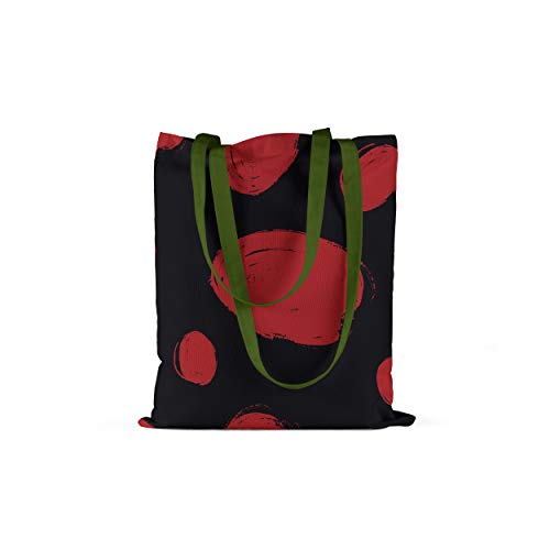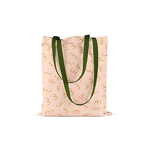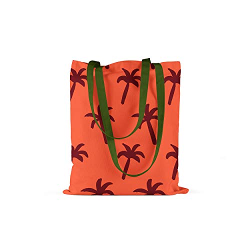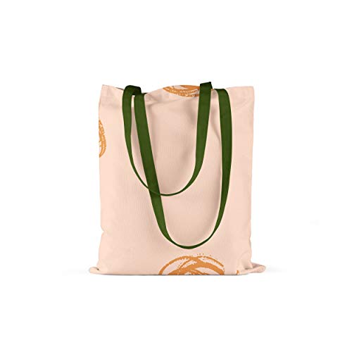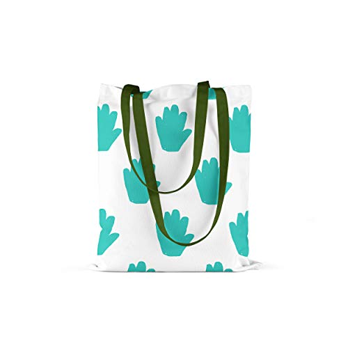 Bonamaison Tryckt tygväska, återanvändbar matkasse, shoppingväska, maskintvättbar, vikbar, canvasduk väska med gröna handtag, storlek: 34 x 40 cm