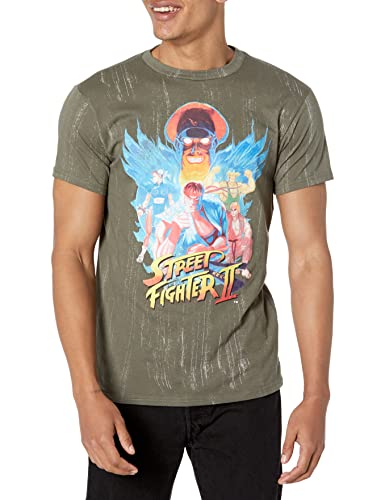 Capcom Herr Street Fighter Ii borstad färg kortärmad T-shirt, Grön midnatt, XL