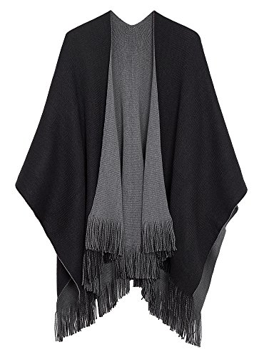Urban CoCo Women's Vintage Poncho Cape Tassel Shawl Wrap Cardigan Coat (Black)