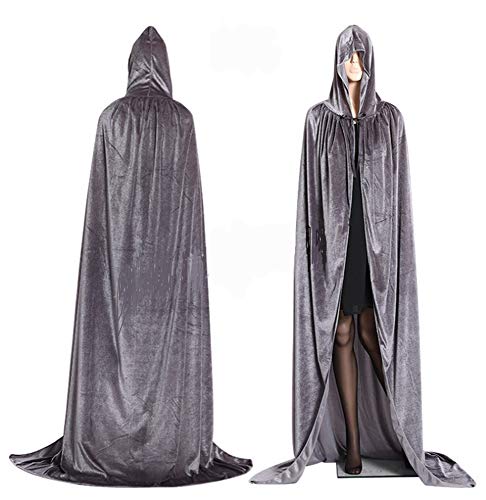 CHSYOO Grå Hooded Coat Lång Cape med Huvrock för Halloween Kostymfest Häxa Devil Vampire Cosplay Fancy Dress
