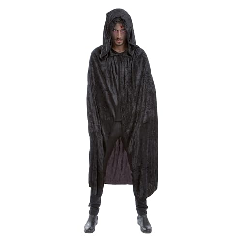 Myir JUN Halloween-mantel med huva, lång cape, rock, sammet, maskeraddräkter för vuxna, barn, cosplay, unisex (L, svart sammet)