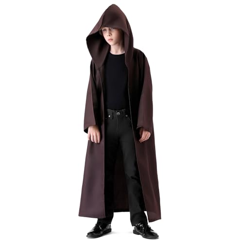 Banchif Cape brun tunika med huva Cape Halloween barn cosplay karneval pojke medeltida kostym barn kostym (brun, 150)