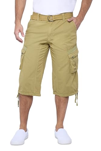 X RAY Herr Belted taktisk cargo långa shorts 45 cm (18 tum) inseam Below Knee längd multificka 3/4 Capri byxor kaki storlek 32