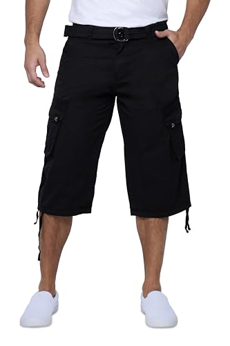X RAY Långshorts för män med bälte, 45,72 cm innersöm under knälånga med flera fickor 3/4 capribyxor (stora och höga shorts för män), Svart, 50