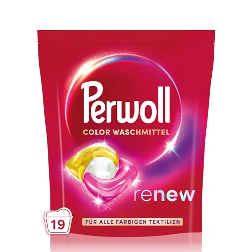 Perwoll Renew Caps färgtvättmedel (19 tvättar), allt-i-1 lock försiktigt rengöra och förnya färger och fibrer, för alla färgade textilier, med trippelförnyad teknik