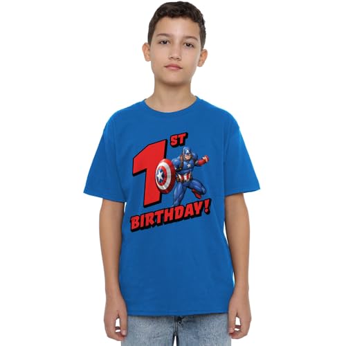 Captain America födelsedag 1 unisex barn t-shirt, kunglig, 9-10 år, Kunglig, 9-10 År