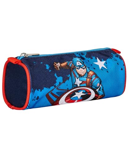 Captain America Skolpennhållare - LEGENDARY AVENGER, blå röd vit - skolväska för barn - öppning med dragkedja -