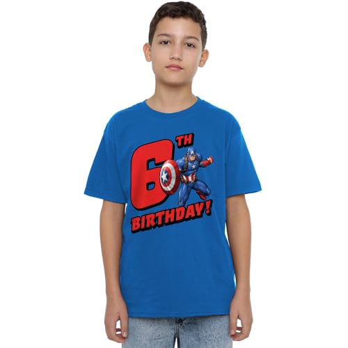 mandarin creative ltd Captain America Birthday 6 Unisex Kids T-tröja, royal, 7–8 år, Kunglig, 7-8 �r